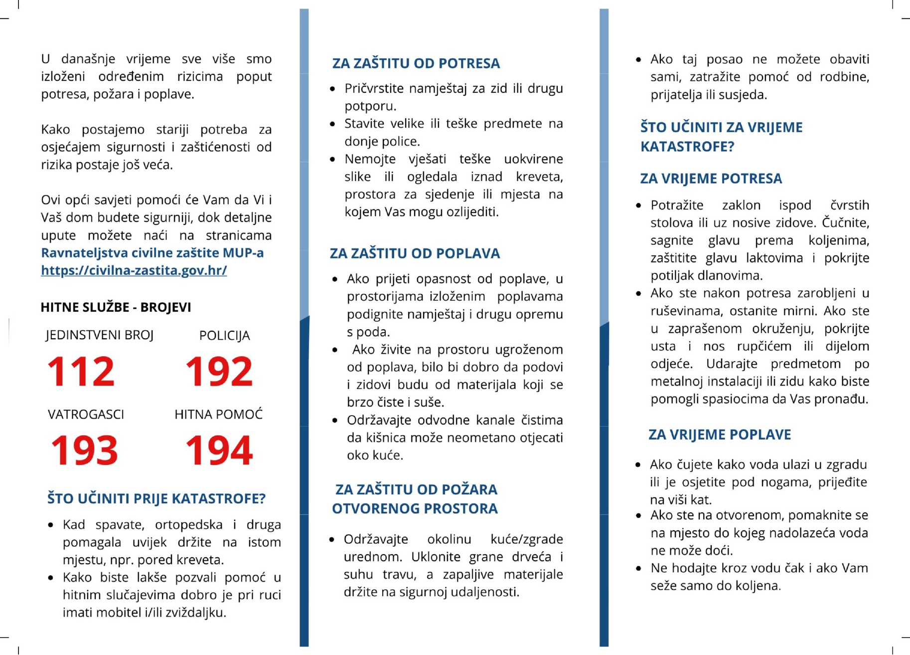 Letak: „Zaštitimo se od katastrofa - opće upute za naše starije“