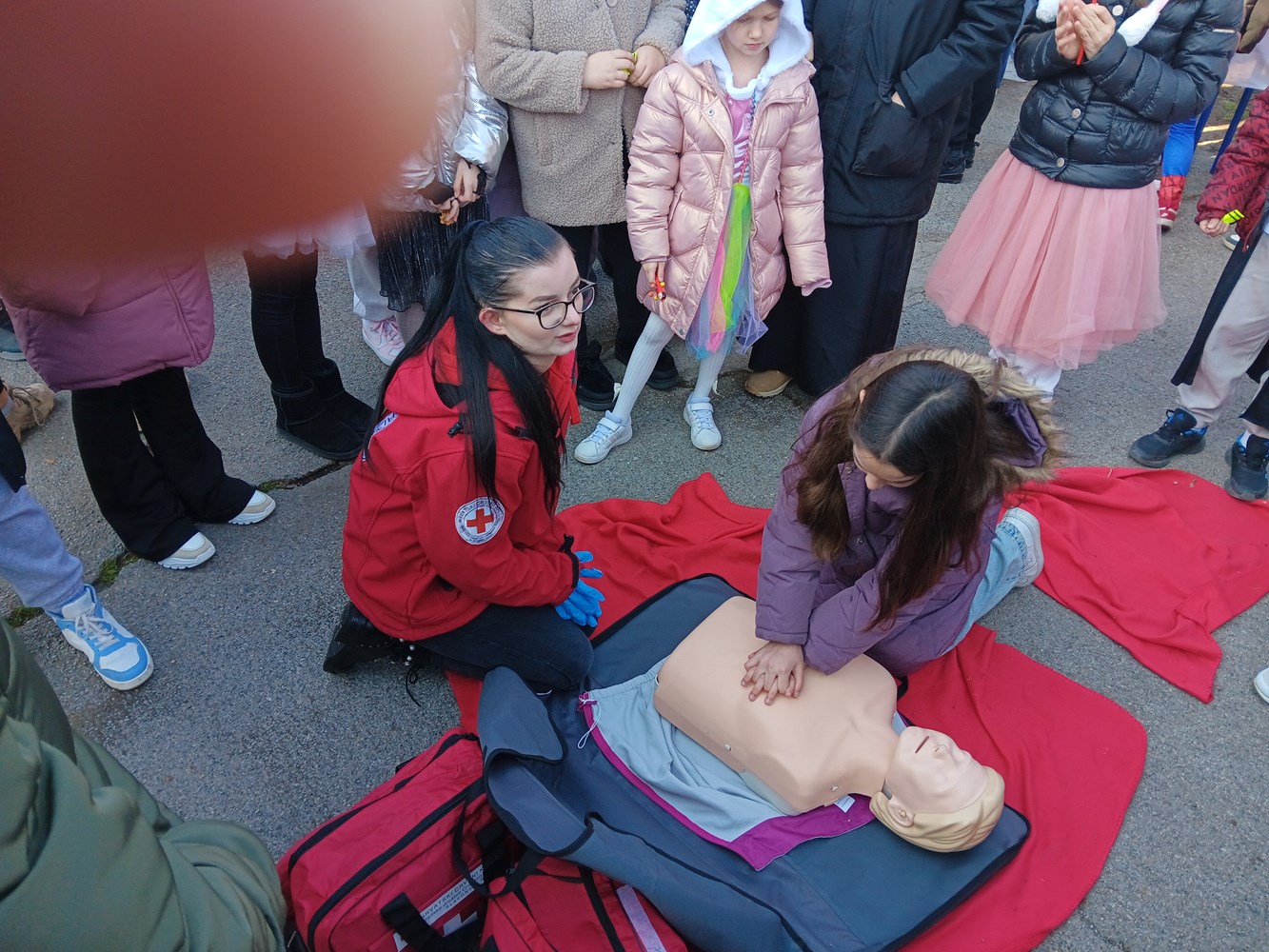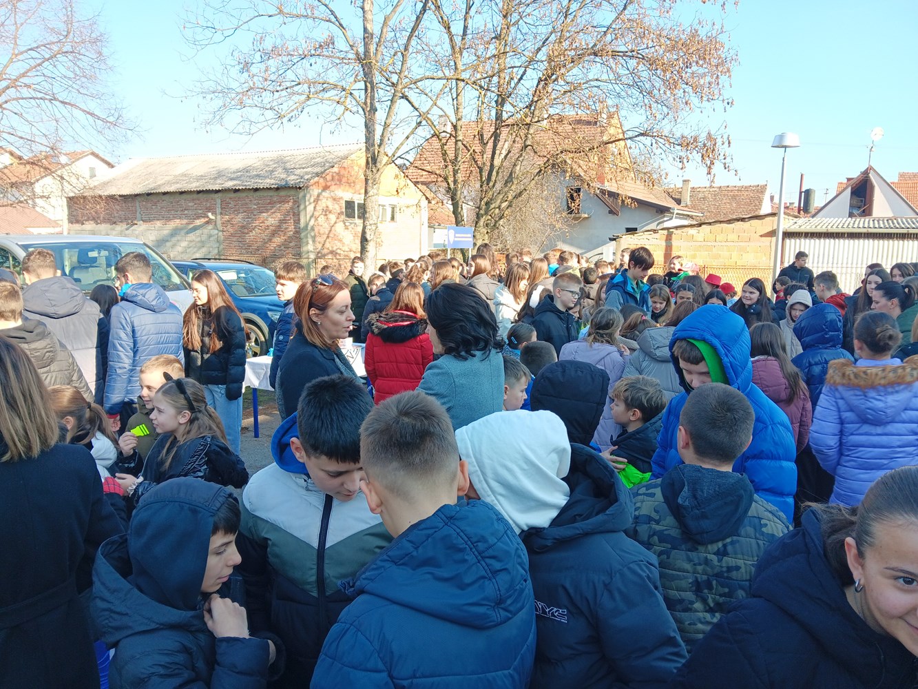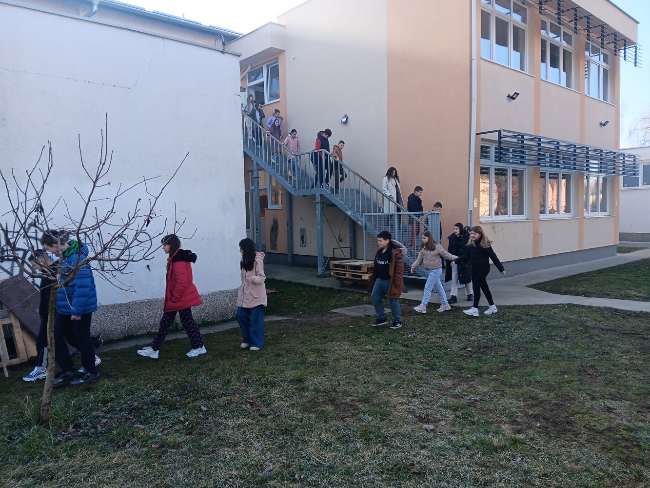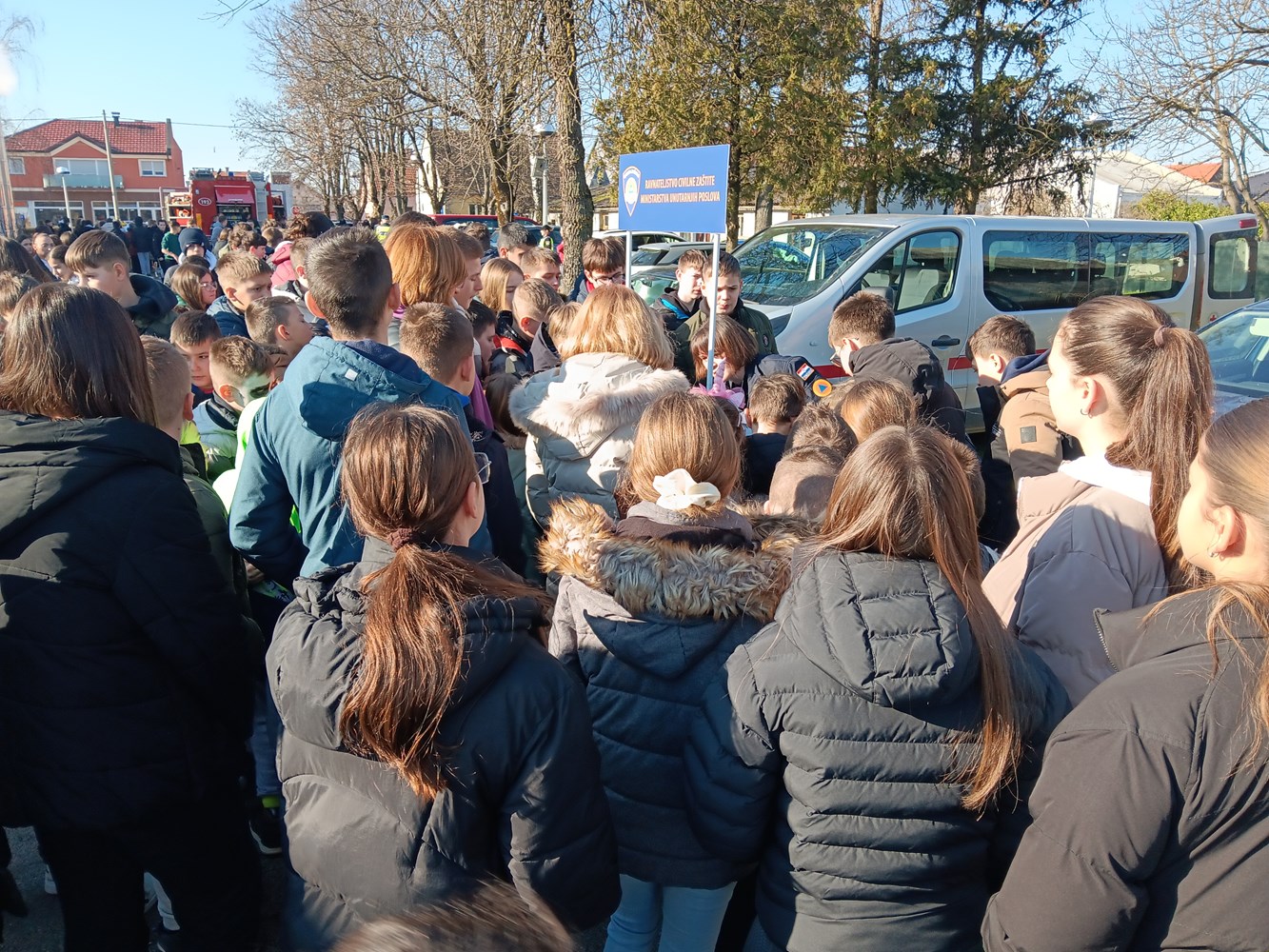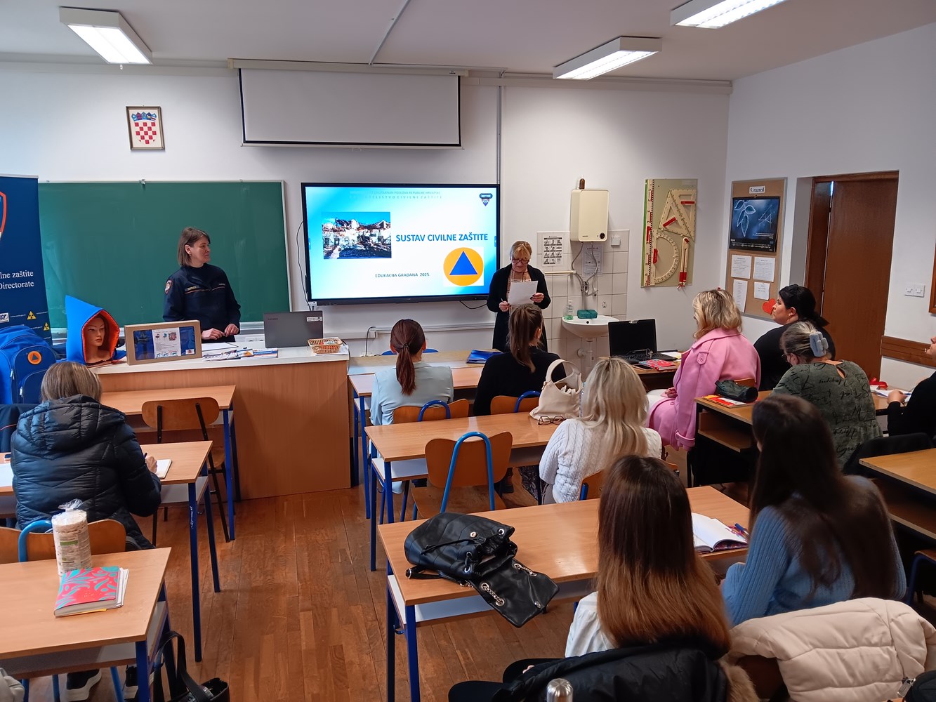 Prije vježbe djelatnice Službe civilne zaštite Slavonski Brod održale su edukaciju učenika drugih razreda iz područja sustava civilne zaštite te sve učenike nagradile prigodnim poklonom- medenjakom sa znakom civilne zaštite.