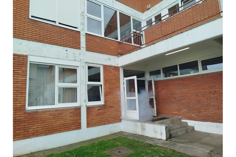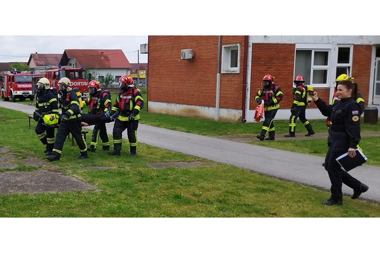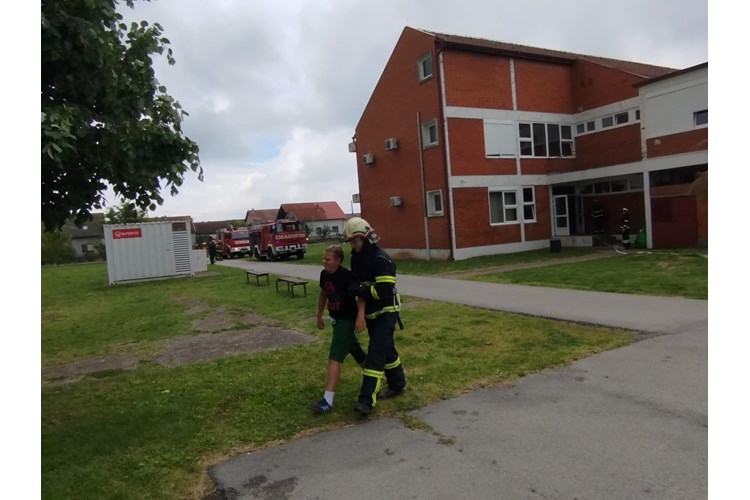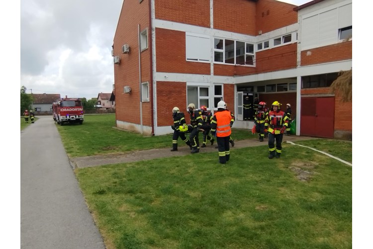 Foto: MUPScenarijem vježbe predviđeno je izbijanje požara u informatičkom kabinetu u Osnovnoj školi Stari Jankovci, do kojeg je došlo uslijed kvara na produžnom električnom kabelu te zapaljenja električnih instalacija uređaja koji se napajaju preko istog.