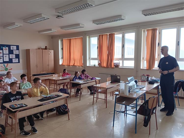 Foto: MUPDjelatnici službe civilne zaštite Slavonski Brod održali su edukaciju za učenike drugih razreda osnovnih škola „Dragalić“, Okučani, i „Markovac“ Vrbova te za djecu starije i predškolske skupine dječjeg vrtića „Žabica“, „Dragalić“.
