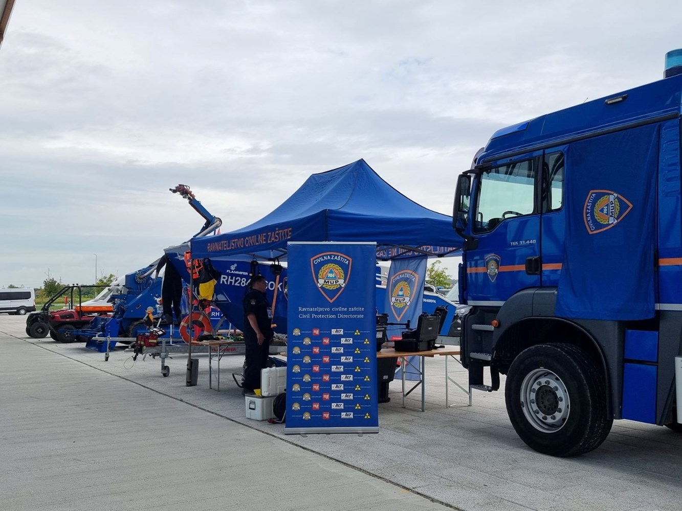 Na vanjskom prostoru sajma pak posjetitelji mogu vidjeti zapovjedno-komunikacijsko vozilo, čamce, amfibiju, terenski četverokotač ('quad') i višenamjenski robot Ravnateljstva civilne zaštite.