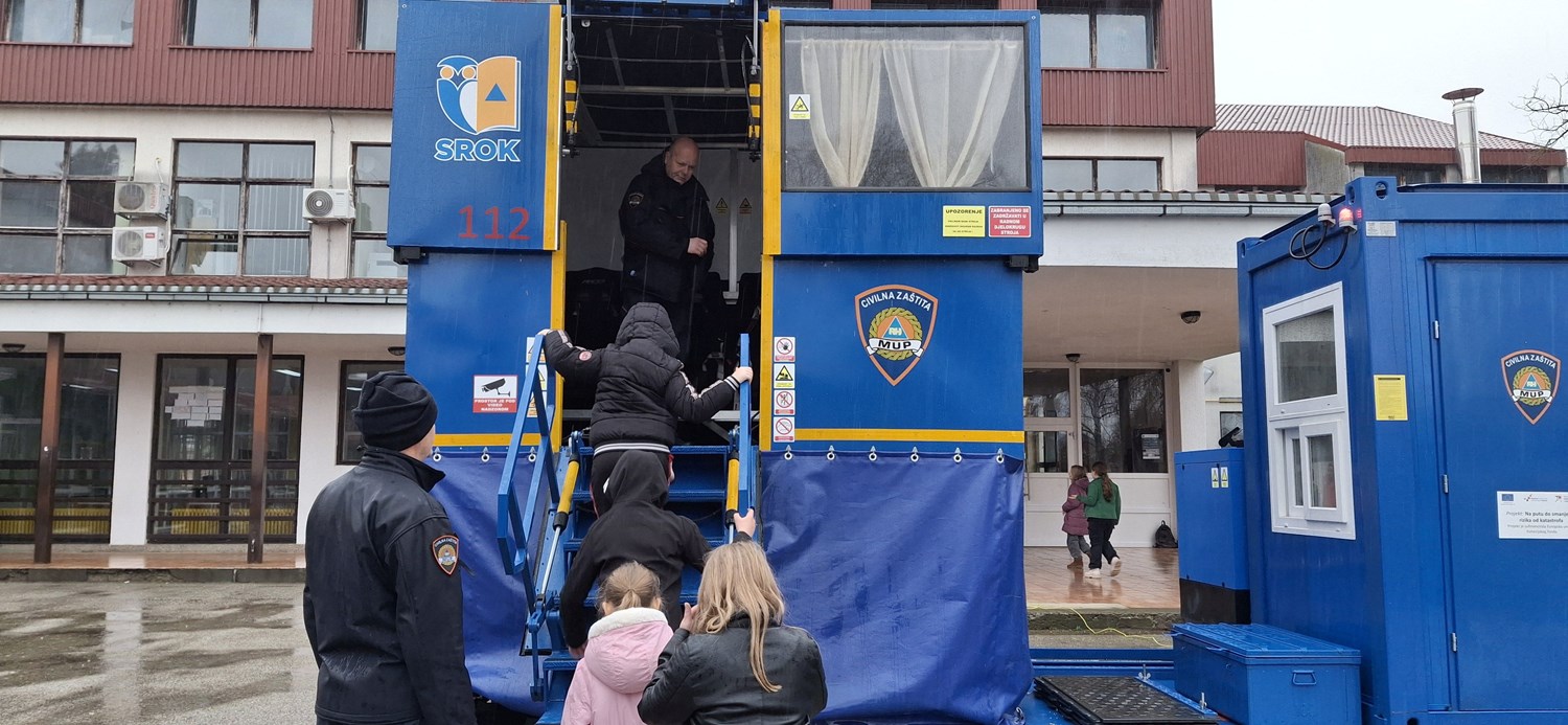 Foto: MUPEdukaciji i aktivnostima o smanjenju rizika od katastrofa prisustvovali su učenici od 1.-8. razreda koji su u sklopu edukacije mogli iskušati i simulator potresa.