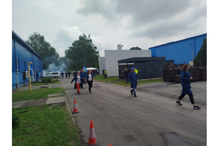 Tijekom vježbe, djelatnici Javne vatrogasne postrojbe Vinkovci demonstrirali su zaposlenicima Uniora početno gašenje požara pomoću vatrogasnih aparata.