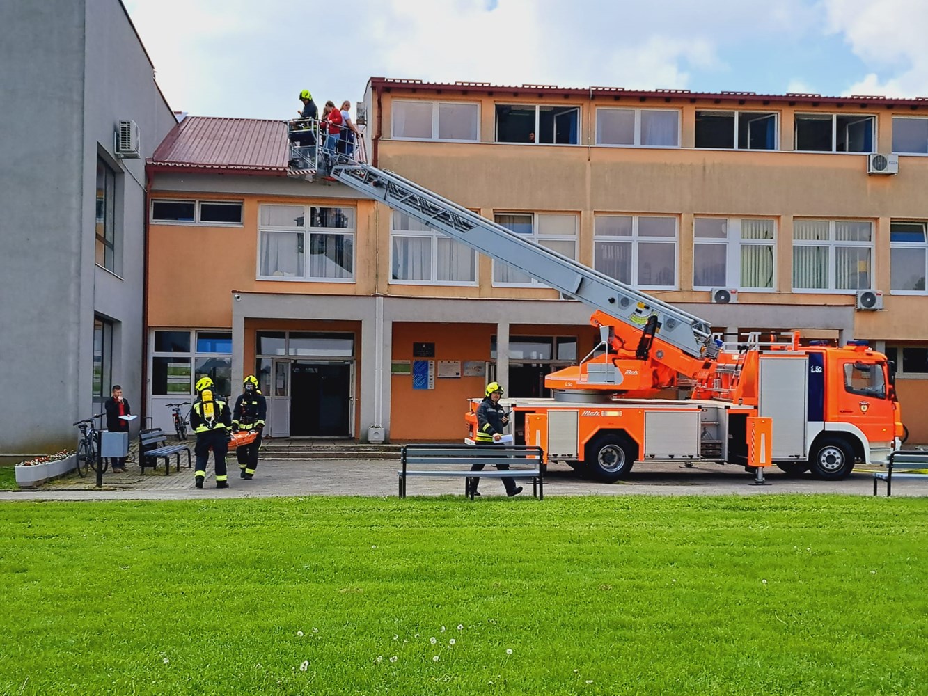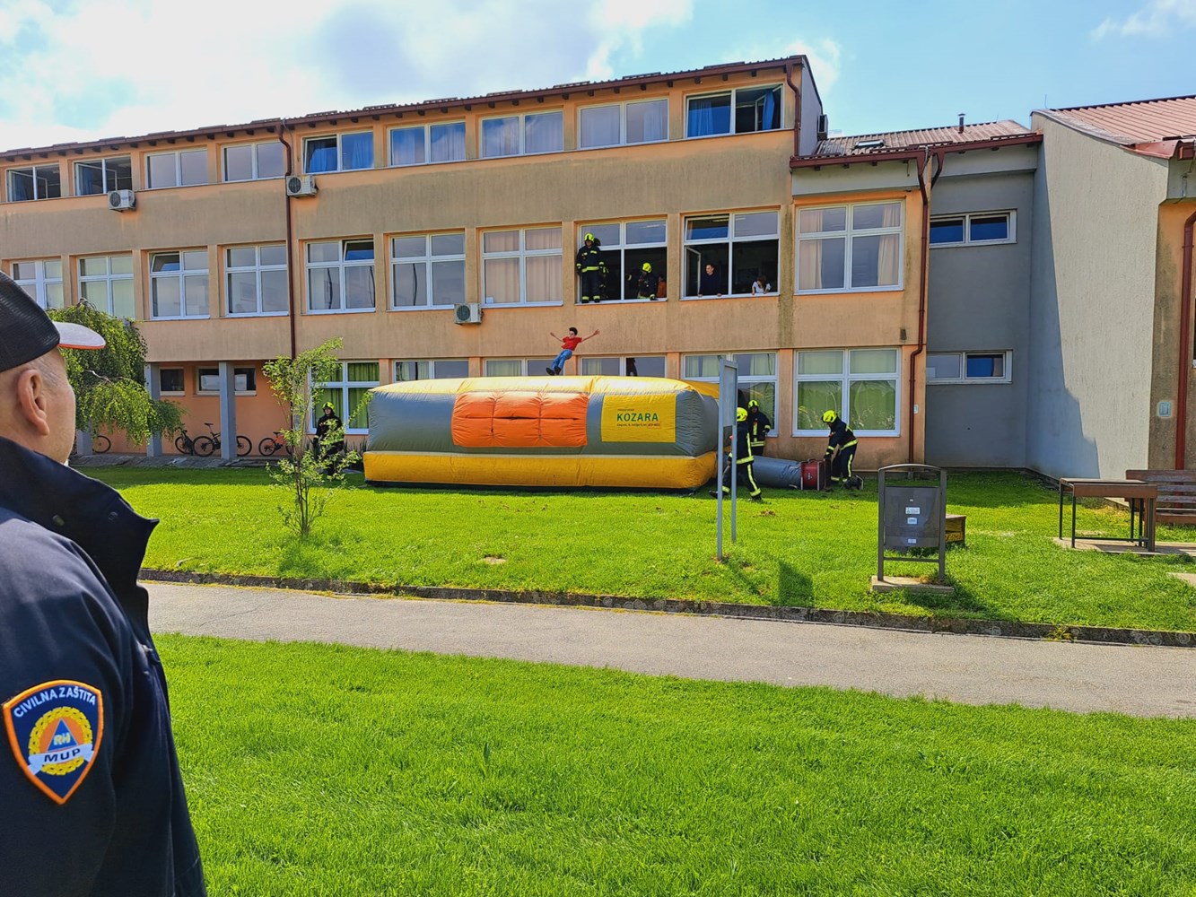 Prilikom realizacije scenarija potresa i pojave požara u prostoru škole, provedena je evakuacija učenika i nastavnog te tehničkog osoblja