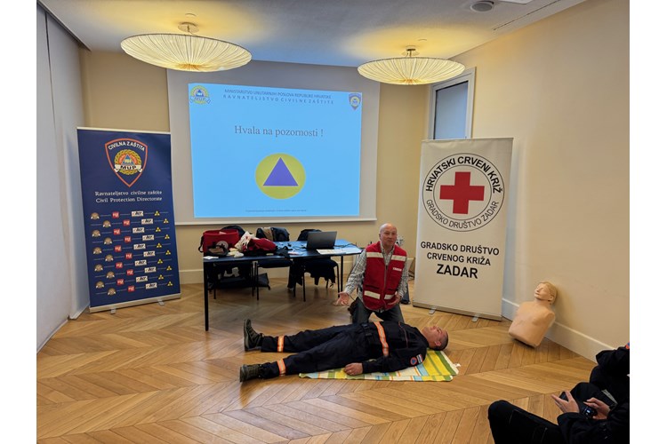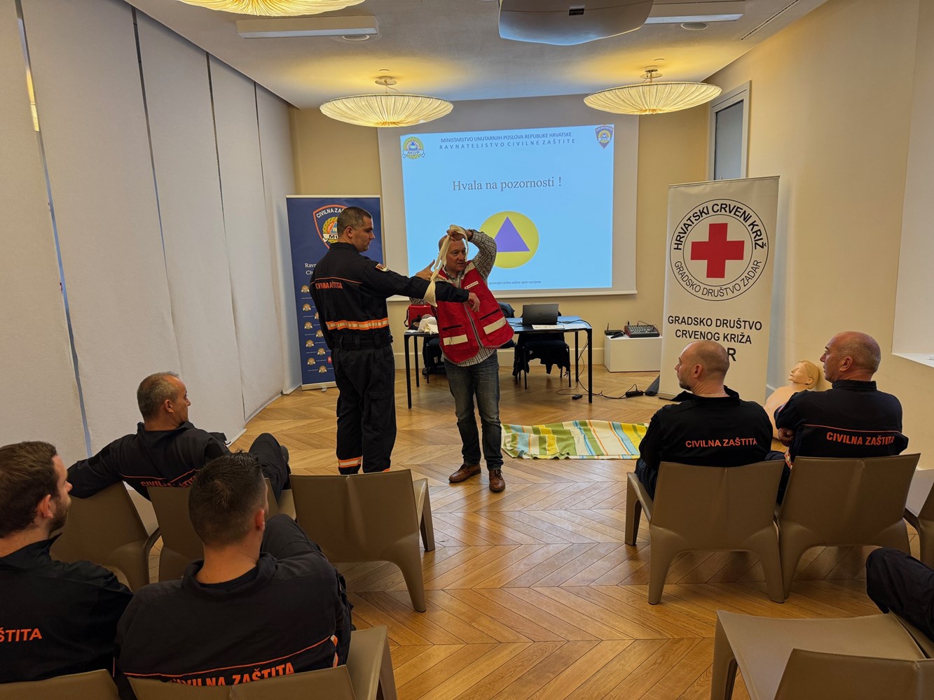 Osim djelatnika Službe civilne zaštite Zadar, u osposobljavanju su sudjelovali predstavnici Gradskog društva Crvenog križa Zadar koji su na praktičan način pokazali postupke pružanja prve pomoći, transport unesrećene osobe s raspoloživim improviziranim sredstvima i druge postupke koji spašavaju živote.