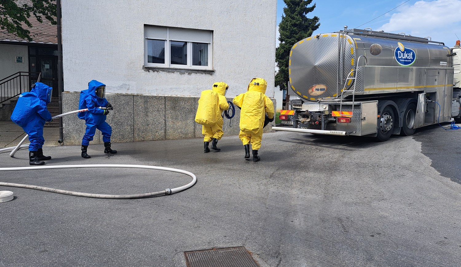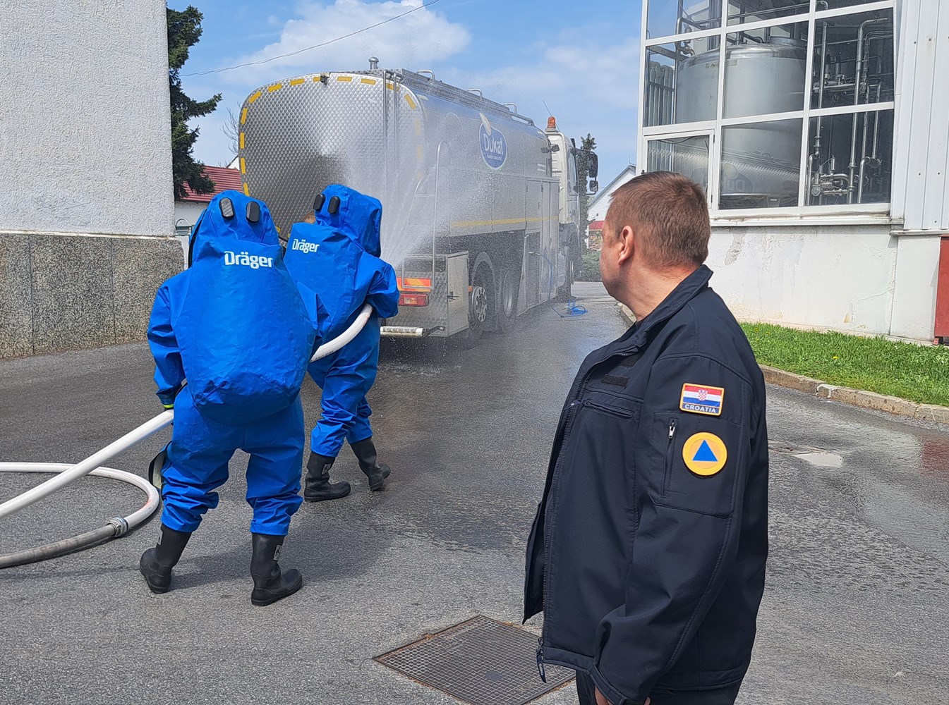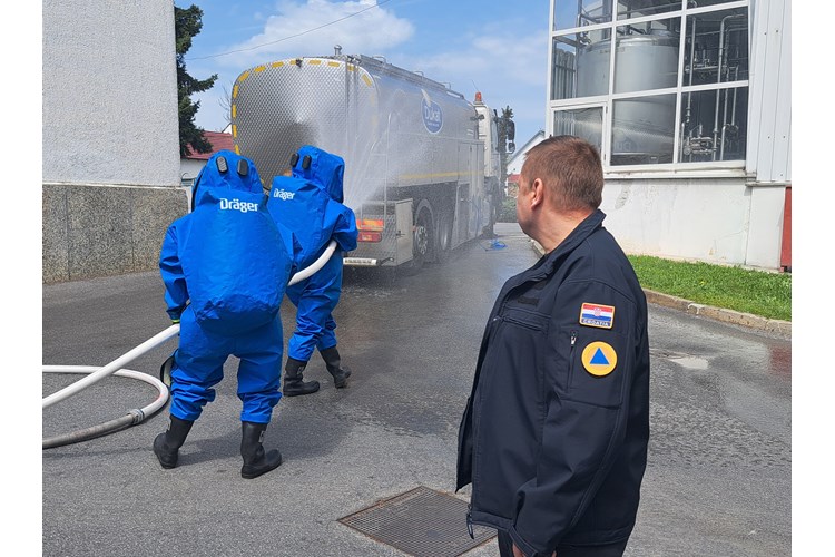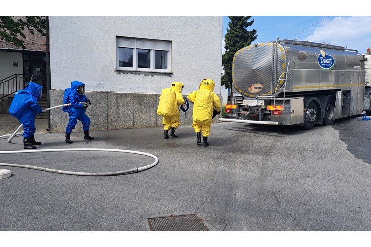Druga vježba održana je u tvrtki Dukat d.d. Tvornica Bjelovar u Velikim Sredicama u kojoj je prema scenariju došlo do nekontroliranog istjecanje dušične kiseline iz cisterne. Uvježbavala se evakuacija zaposlenika i sprječavanje izlijevanja kemikalija u kanalizacijski sustav koji vodi na pročistač otpadnih voda te zbrinjavanje ozlijeđenog vozača cisterne.