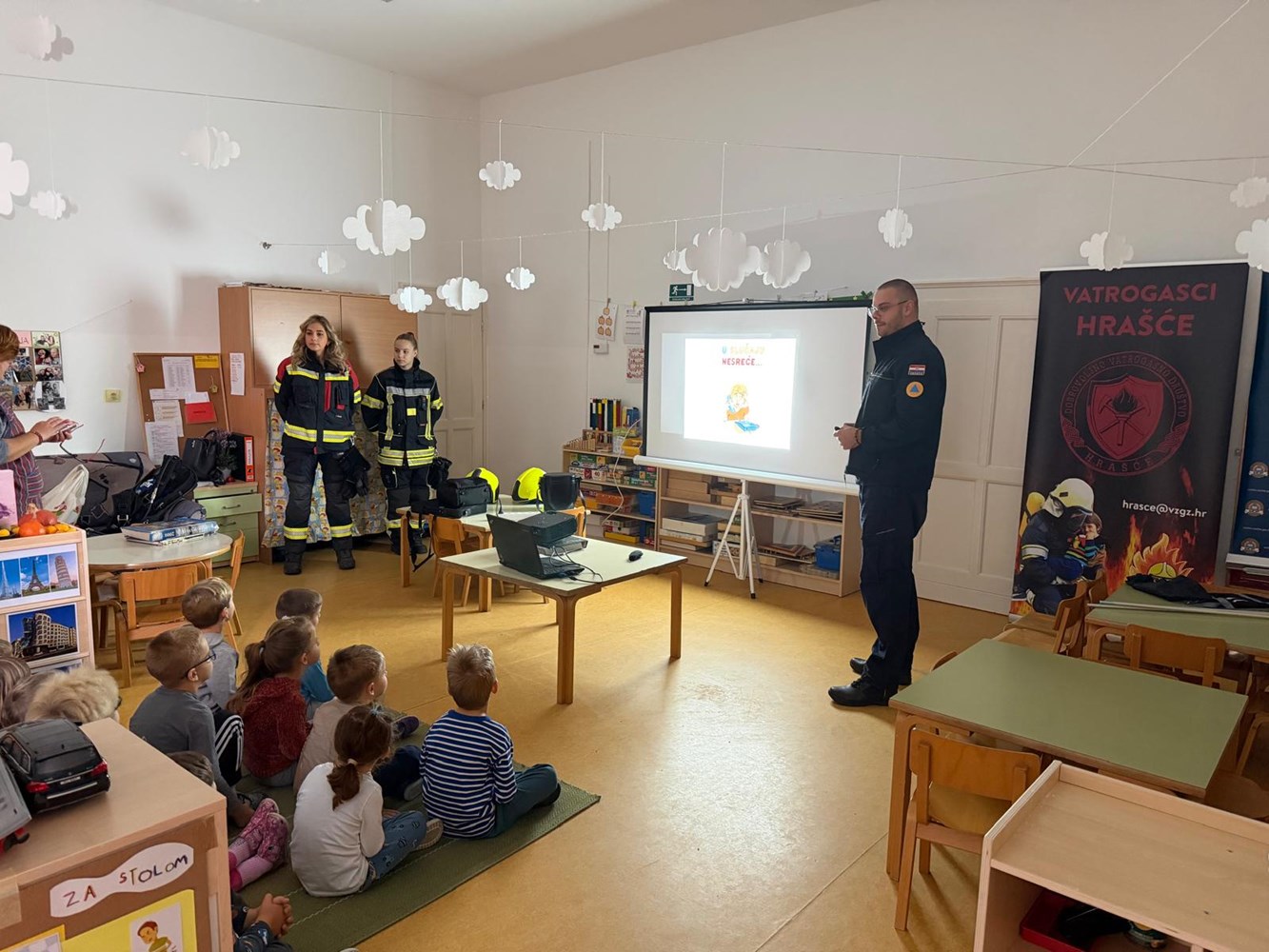 Uz djelatnike Područnog ureda civilne zaštite Zagreb, na edukaciji su sudjelovali i pripadnici DVD-a Hrašće koji su djecu upoznali sa svojim djelokrugom rada.