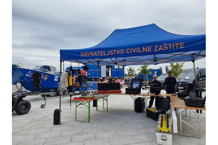 Na Jesenskom sajmu u Gospodarskom centru Osječko-baranjske županije, u suradnji s Državnom intervencijskom postrojbom civilne zaštite Osijek, djelatnici Područnog ureda civilne zaštite Osijek predstavili su opremu i vozila za spašavanje - od čamaca i amfibija do dronova, sonara i zapovjedno-komunikacijskog kontejnera. Poseban naglasak bio je na edukaciji djece i mladih koji su kroz radionice i društvene igre poput „Zemlje rizika“ učili o prijetnjama i rizicima te kako se odgovorno ponašati u kriznim situacijama.