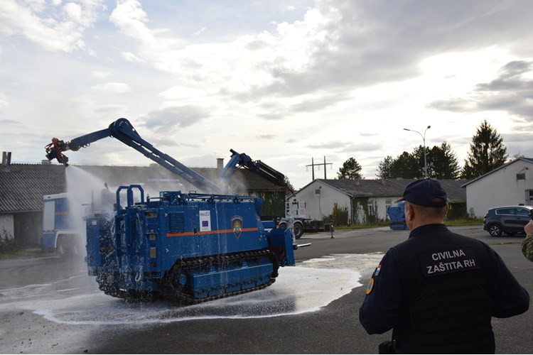 U sklopu obuke pripadnici Državne intervencijske postrojbe civilne zaštite uvježbani su za provedbu KBRN dekontaminacije prometnica, objekata i članova postrojbe, a koja se temelji na daljinski upravljivim strojevima