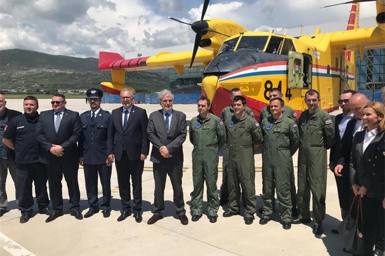 FOTO: PU splitsko-dalmatinskaMinistar Božinović i povjerenik Stylianides potpisali su 23. svibnja 2019. Pismo namjere o nastavku suradnje Ministarstva unutarnjih poslova RH i Europske komisije u uspostavi prijelaznog mehanizma za civilnu zaštitu (rescEU), ali i Ugovor o dodjeli europskih bespovratnih sredstava za financiranje kapaciteta koje je Republika Hrvatska prijavila u prijelazni rescEU mehanizam. Konkretno, radi se o stavljanju na raspolaganje dva vatrogasna zrakoplova tipa Canadair CL415 navedenom mehanizmu.