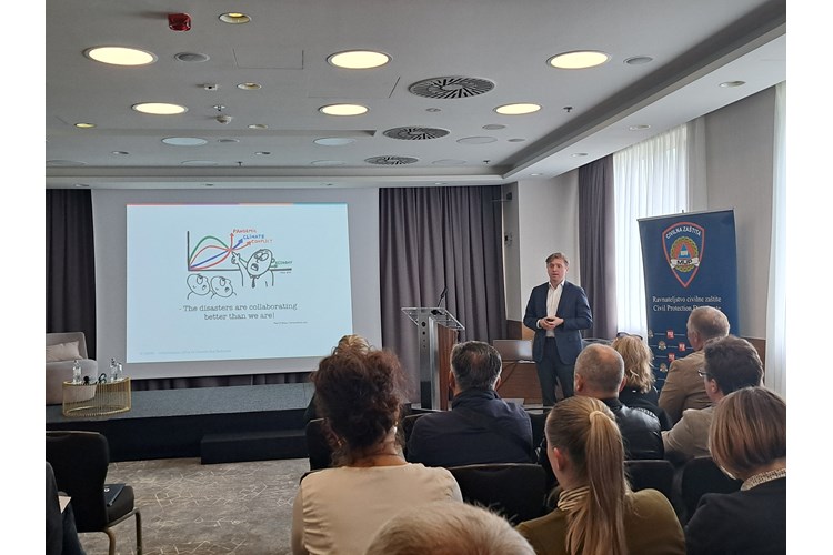 U ime Nevena Karasa, ovlaštenog za obavljanje poslova ravnatelja Ravnateljstva civilne zaštite, prisutnima se obratila pomoćnica ravnatelja Marijana Klanac, istaknuvši kako je događanje posvećeno temi koja je od izuzetne važnosti u kontekstu sigurnosti, održivosti i otpornosti, a to je stvaranje baze podataka o štetama i gubicima od katastrofa.