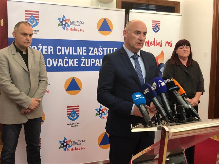 Foto: MUPRadnom sastanku Stožera civilne zaštite Karlovačke županije nazočili su i Trutovi suradnici - koordinatori za poslove civilne zaštite Ravnateljstva civilne zaštite MUP-a RH Marijana Klanac i Darko Majstorović, pročelnik Područnog ureda civilne zaštite Rijeka Matko Škalamera i voditelj Službe civilne zaštite Karlovac Alenko Hudak, zatim ravnateljica Hrvatskog zavoda za hitnu medicinu i članica Nacionalnog stožera civilne zaštite RH prim. dr. Maja Grba-Bujević, zamjenica župana Vesna Hajsan Dolinar, načelnik Stožera civilne zaštite Karlovačke županije Josip Ribar, načelnik Policijske uprave karlovačke Darko Bratić, ravnatelj Opće bolnice Karlovac prim. dr. Ervin Jančić, ravnateljica Zavoda za javno zdravstvo Karlovačke županije Jelica Magdić, ravnatelj Zavoda za hitnu medicinu Karlovačke županije Nikša Antica i glavni vatrogasni zapovjednik Vatrogasne zajednice Karlovačke županije Goran Franković.
