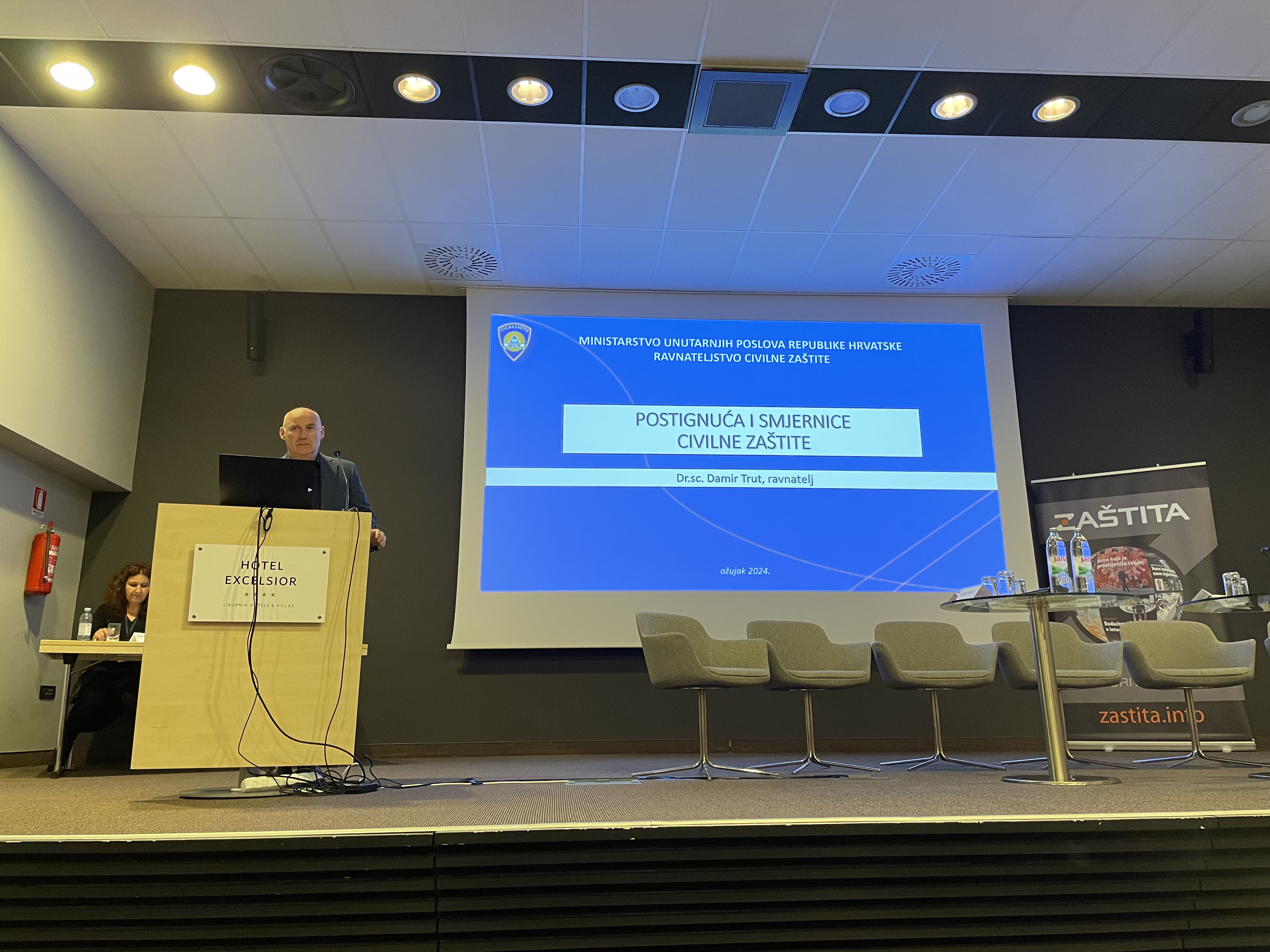 U sklopu konferencije, predavanje je održao i ravnatelj Ravnateljstva civilne zaštite dr. sc. Damir Trut te sudionicima predstavio područje djelovanja Ravnateljstva, aktivnosti i postignuća u sustavu civilne zaštite. Istaknuo je kako se u Ravnateljstvu intenzivno radi na prilagodbi i jačanju zakonodavnog okvira, provođenju projekata financiranih iz EU fondova te daljnjem povlačenju sredstava s ciljem podizanja sustava civilne zaštite na višu razinu, jačanju sustava upravljanja katastrofama kroz opremanje sustava civilne zaštite i svih operativnih snaga, ali i na provođenju preventivnih aktivnosti kroz edukacije i osposobljavanja te podizanju svijesti građana o mogućim ugrozama i aktivnostima smanjenja rizika od katastrofa.