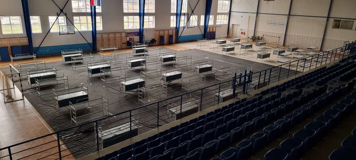 Pripadnici Državne intervencijske postrojbe civilne zaštite Osijek su uz pomoć volontera Gradskog društva Crvenog križa i Društva Crvenog križa Osječko-baranjske županije postavili 100 ležajeva, dopremili posteljinu, pripremili vodu i suhe obroke, namjestili blagovaonicu te dopremili zaštitna sredstva. Trenutno je pripremljen kapacitet za prihvat 100 osoba, a spremno je još 200 ležajeva koji se mogu postaviti u vrlo kratkom roku ako bude potrebe.Za prihvat i smještaj izbjeglica na raspolaganju je i motel Plitvice u Zagrebu, gdje uz pripadnike Hrvatskog Crvenog križa u prihvatu i smještaju sudjeluju i djelatnici Ravnateljstva civilne zaštite.